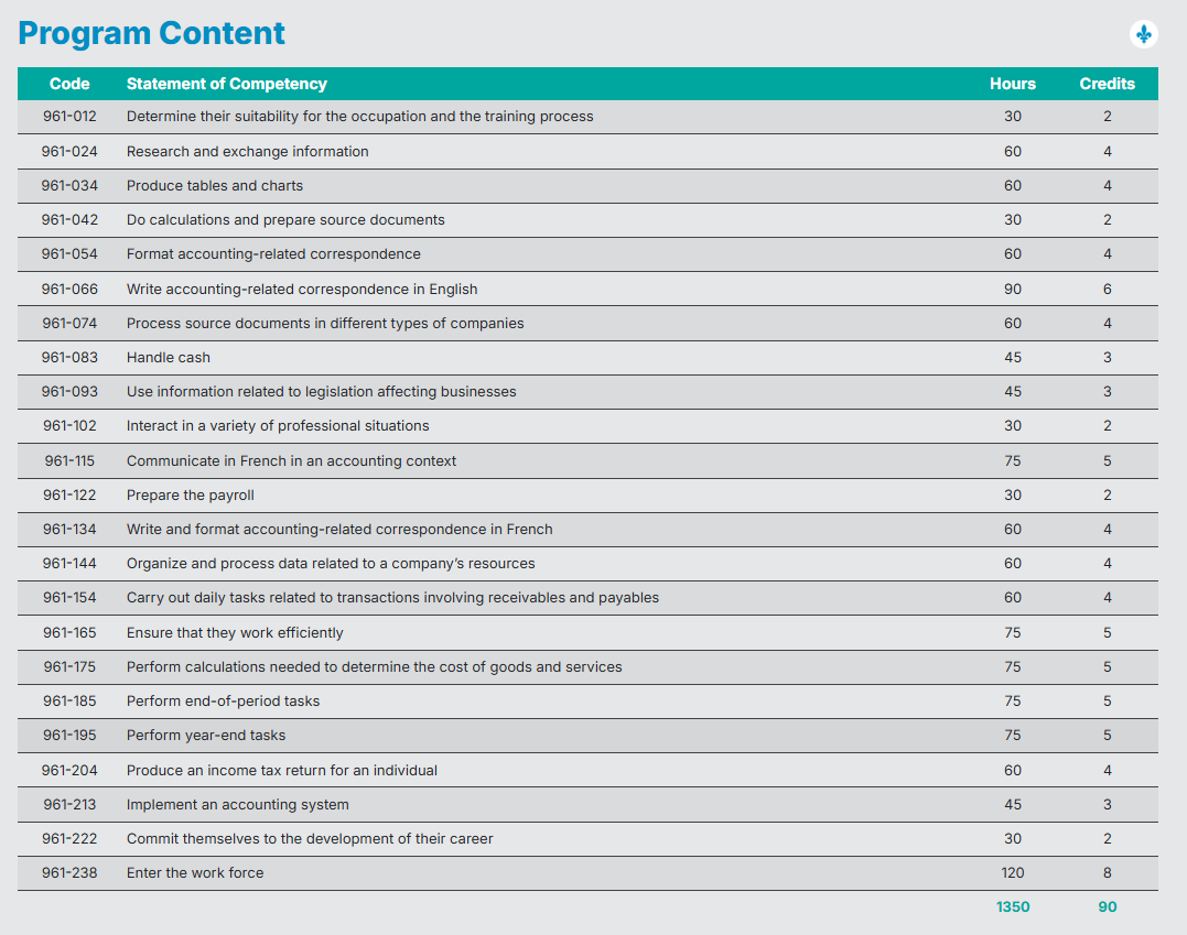 Professional Cooking EMSB: 1470時間 (約18ヶ月) LBPSB: 1470時間 Contemporary Professional Pastry Making EMSB: 450時間 (約18ヶ月)